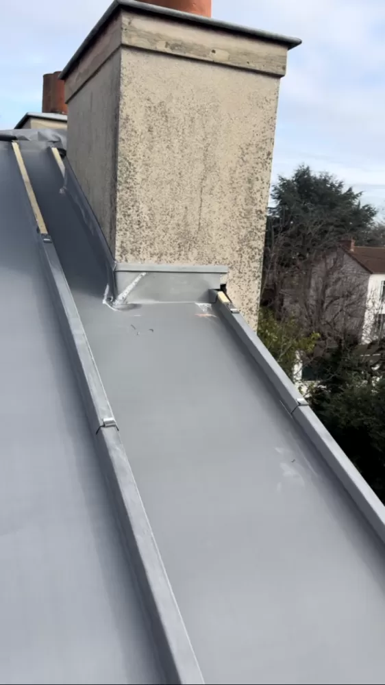Votre couvreur à Esbly a réalisé l’étanchéité de la cheminée sur une toiture en zinc.